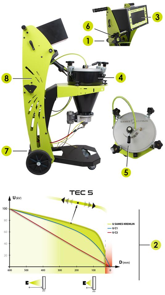 - 5 Control simple e instantáneo de la velocidad del caudal del polvo.